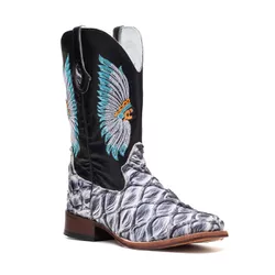 Bota Texana Exótica Masculina Couro Pirarucu Cinza com Floater Preto - Silverado...